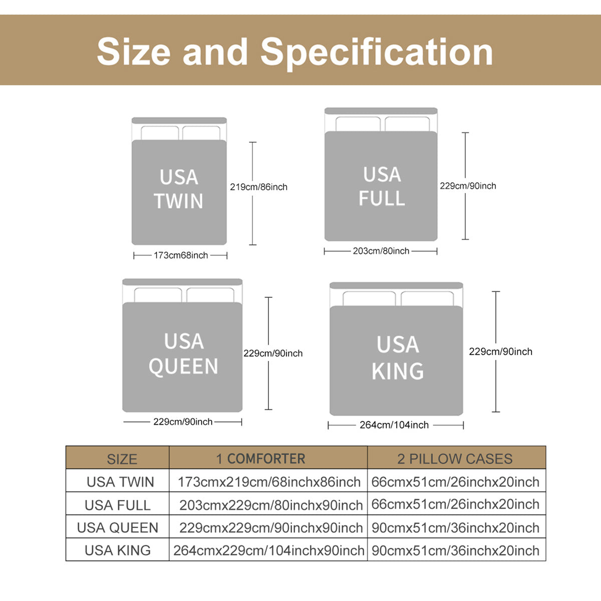 -King-size (104x90’’) – 2 shams (20x36’’)
